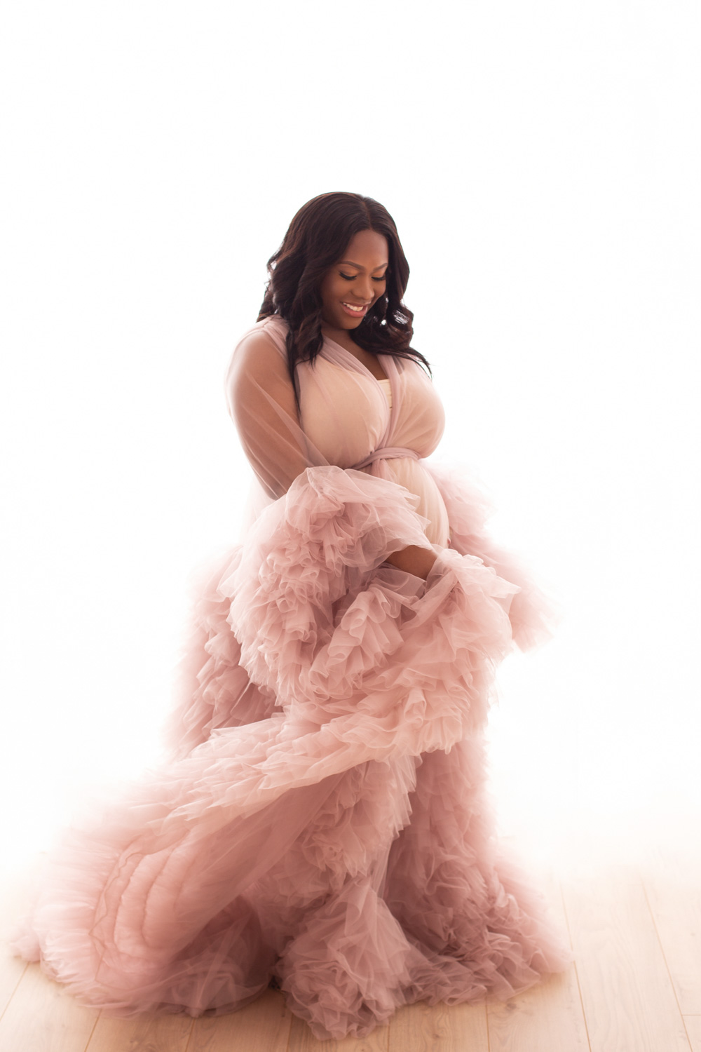 Your maternity portrait experience begins with a £495 creative fee, which includes your consultation, wardrobe styling, professional hair and makeup, and fully guided photoshoot.